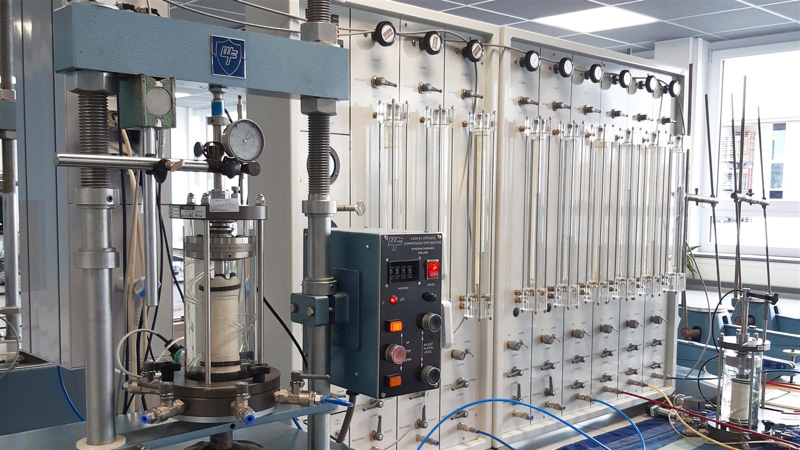 In unseren geotechnischen Laboren bestimmen wir die physikalischen und mechanischen Eigenschaften von Boden- und Felsproben sowie die Baustoff- und Materialeigenschaften von Dichtwandmassen oder mineralischen Dichtstoffen, Kunststofffolien und verbesserten Böden. Spezialversuche an gefrorenen Bodenproben führen wir in unserem Frostlabor durch – ein weltweit einzigartiger Service für unsere Kunden.