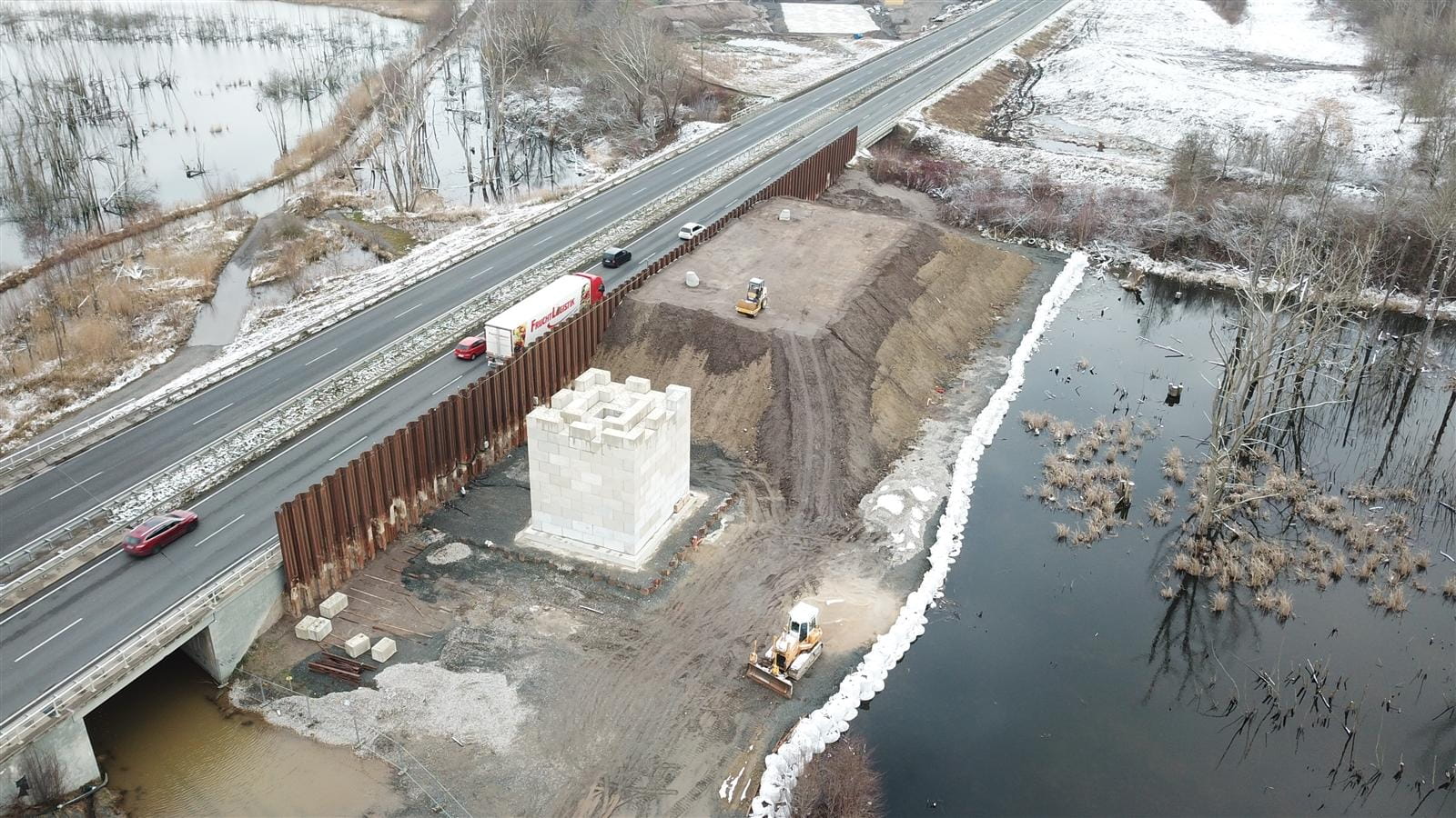 Die Untergrundverbesserungsmaßnahmen wurden bereits zu etwa 95 % abgeschlossen. Die Errichtung der Verkehrsdämme und die Herstellung des Geländeeinschnittes für das erste Baulos sind weit fortgeschritten und werden voraussichtlich im kommenden halben Jahr beendet. Nach einer geplanten technologischen Pause, wo sich der Untergrund infolge der Belastung mit den Dämmen setzen und vergleichmäßigen soll, wird im kommenden Baulos dieser erste Trassenabschnitt nach den Straßenoberbauarbeiten, vorerst als Bundesstraße, in Betrieb genommen.