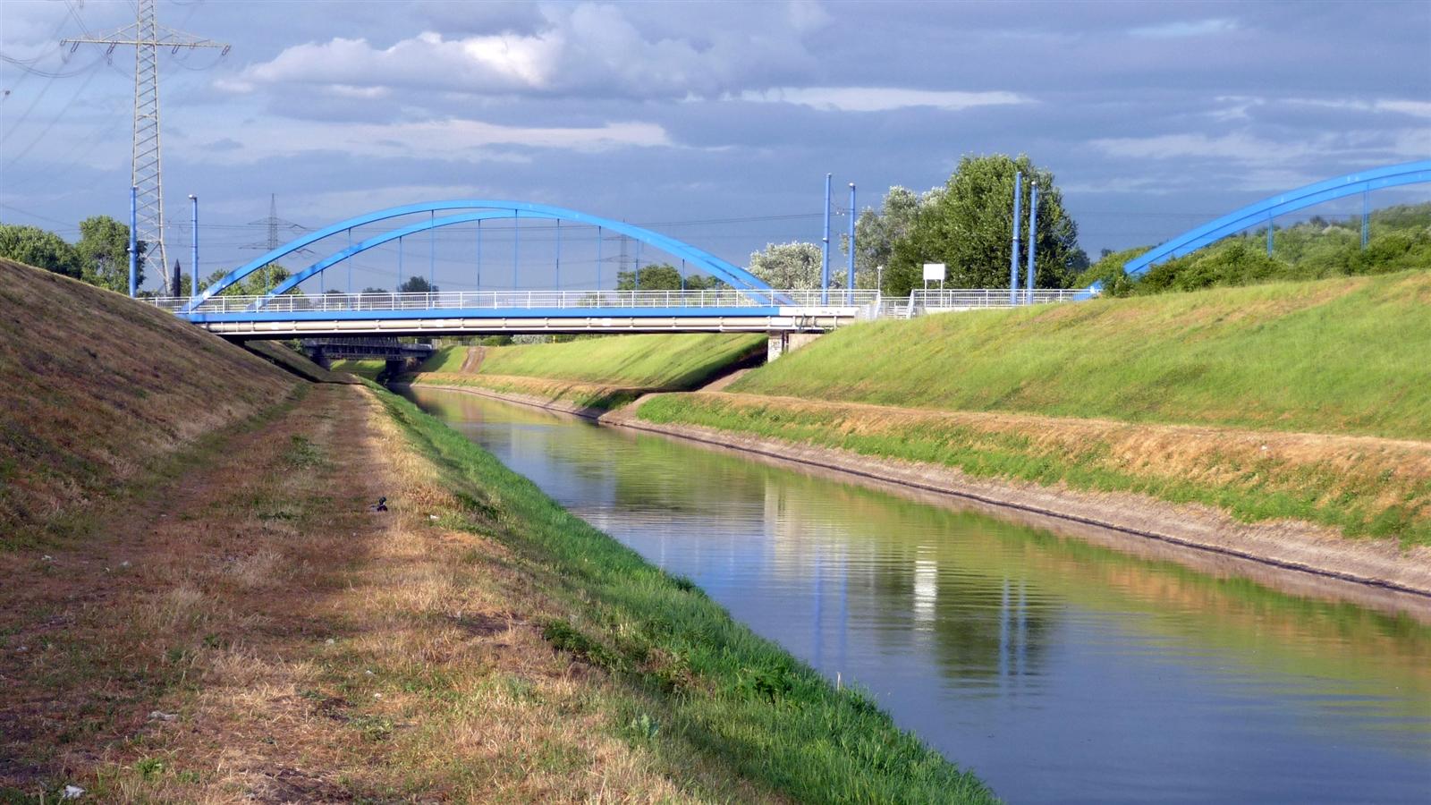 Die Emscher entspringt bei Holzwickede und mündet nach 109 km in den Rhein bei Duisburg. Viele Kilometer, die bis vor einigen Jahren durch Abwässer der Bevölkerung und Industrie verschmutzt wurden. Eine unterirdische Kanalisation war bis dahin nicht möglich, da anhaltende Bergsenkungen durch den Bergbau das Rohrsystem zu verschieben drohten. Erst zu Beginn des 19. Jahrhunderts wurden die Emscher und deren Nebenflüsse reguliert und als offenes Abwasserkanalsystem mit trapezförmiger Befestigung in Betonsohlschalen geführt.