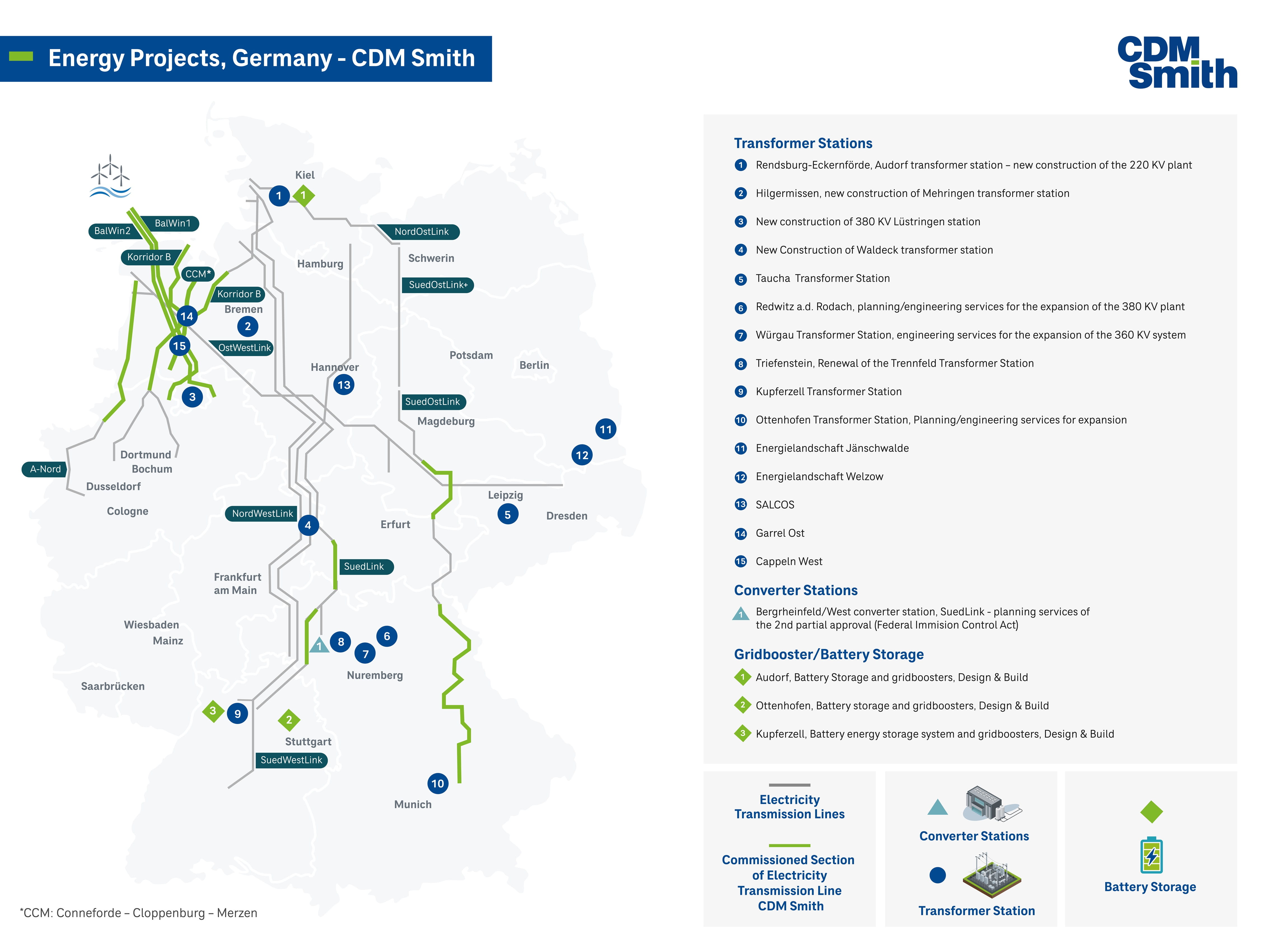 Furthermore we make our contribution to the country's secure energy supply by planning and supervising the construction of transmission grids, substations, converter stations and battery storage facilities.
